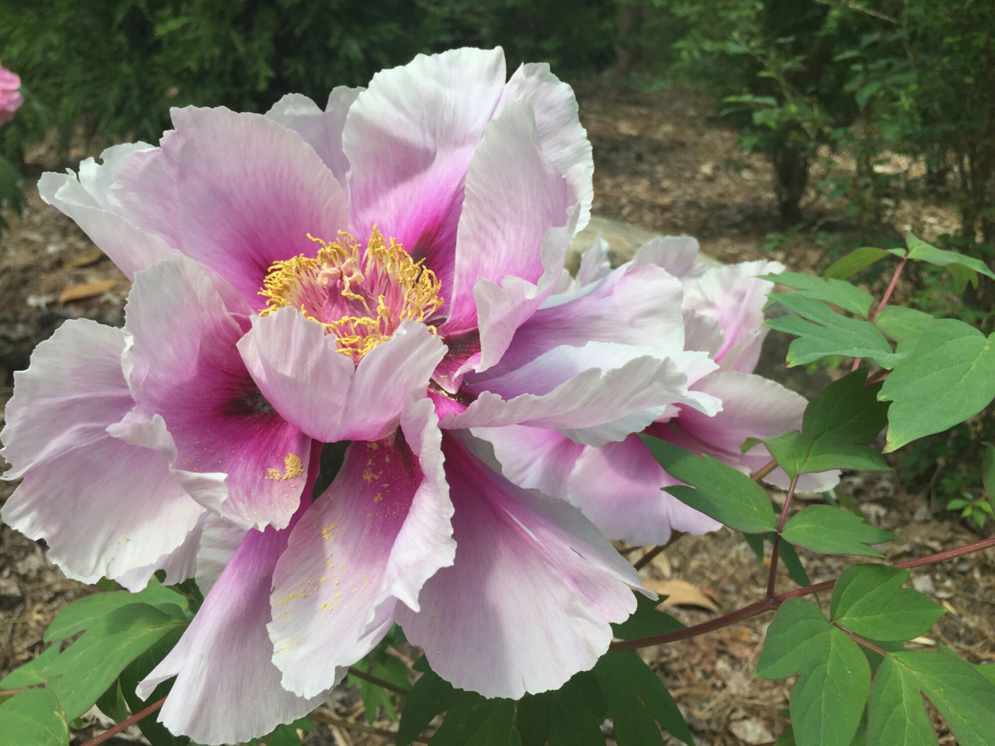 I came across this flower in the Asiatic Arboretum at Duke Gardens, during a work trip last week. It looks like it might be a camellia japonica but I could be wrong — I’m no expert and I found myself wishing for the abundant labels that Bodnant Garden uses!